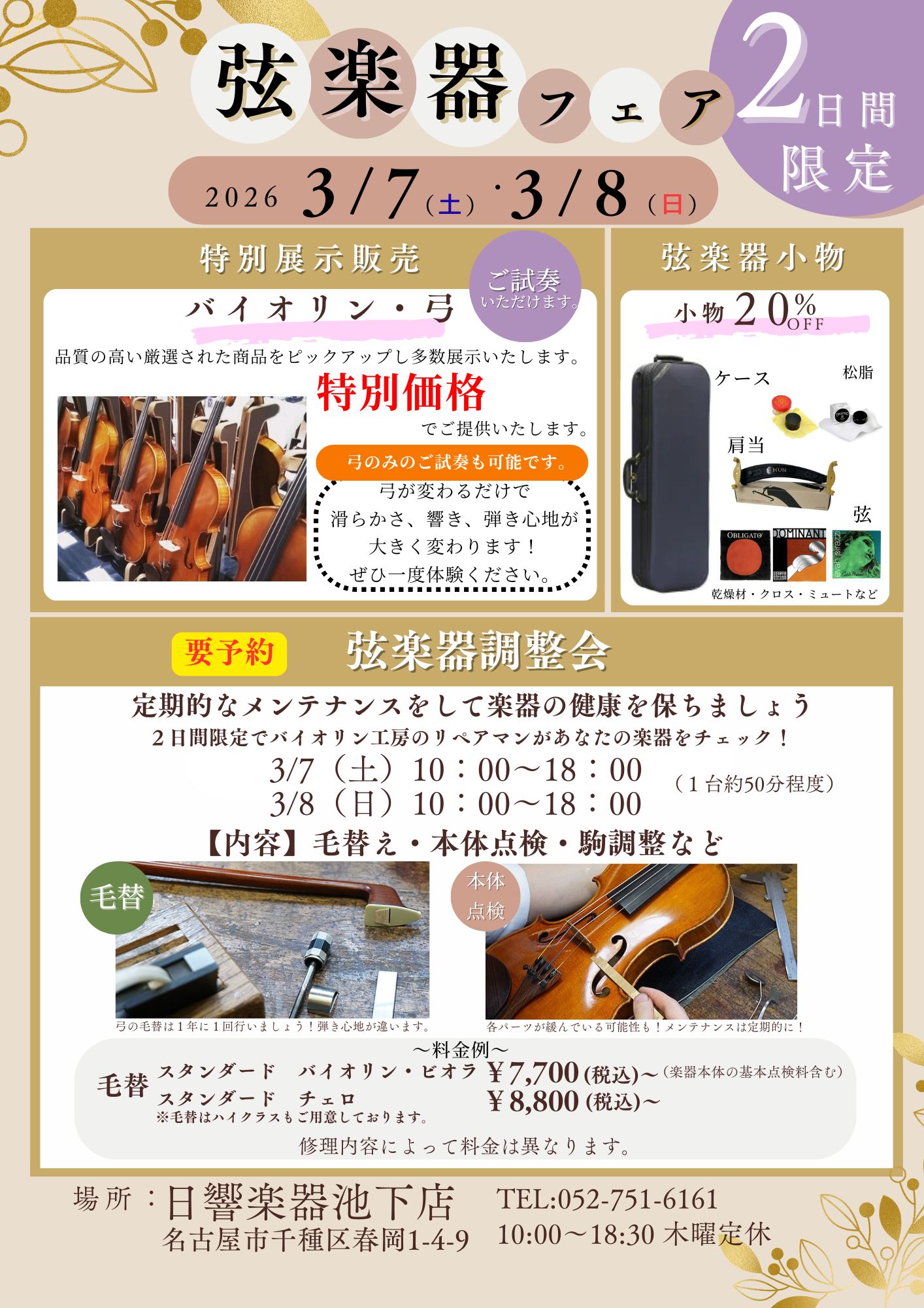 【池下店】3月7日(土)、8日(日)弦楽器フェア