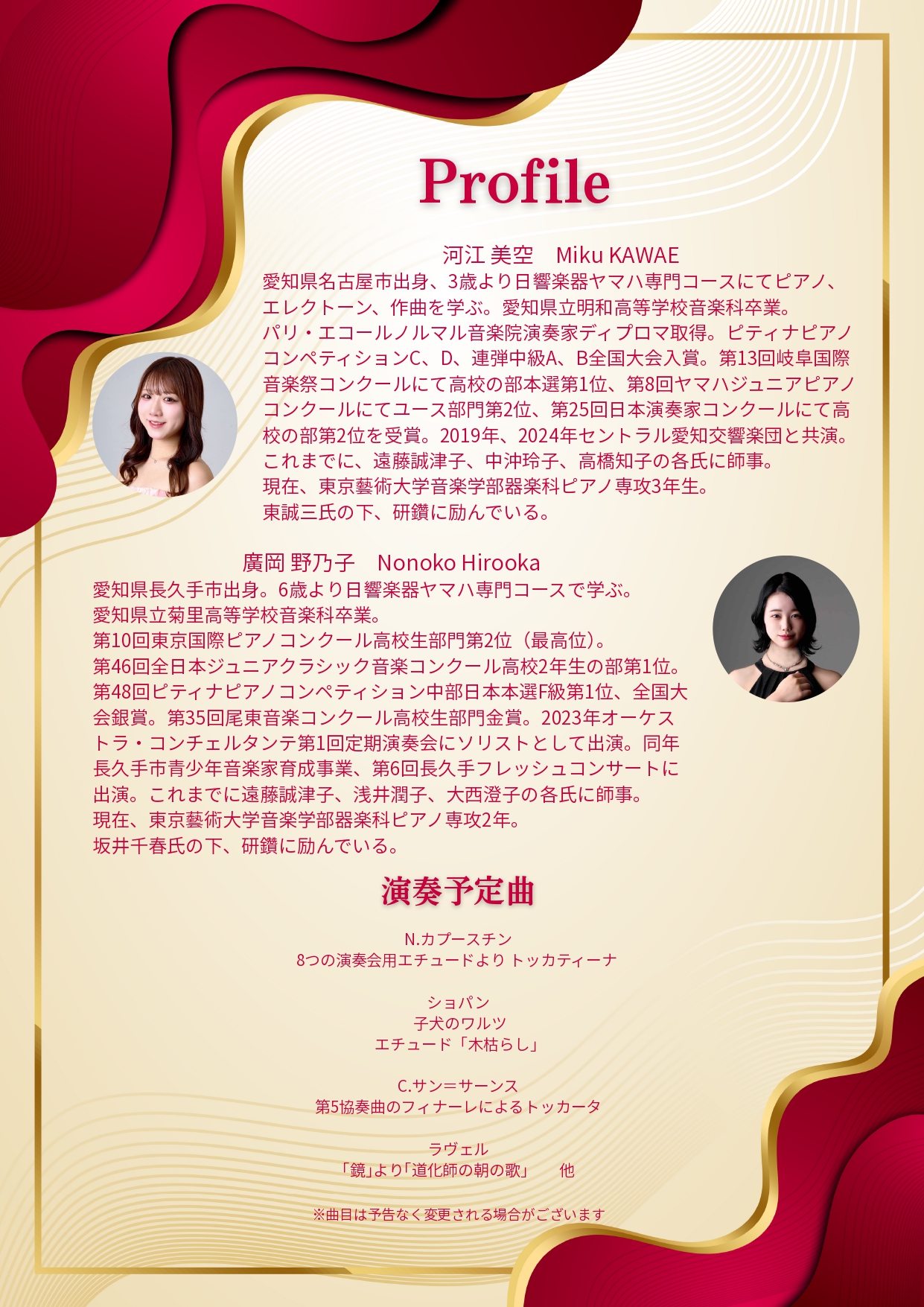 ※曲目は予告なく変更される場合がございます