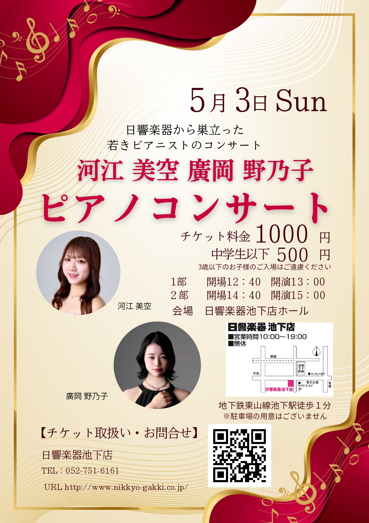 【池下店】5/3(日)河江美空 廣岡野乃子 ピアノコンサート
