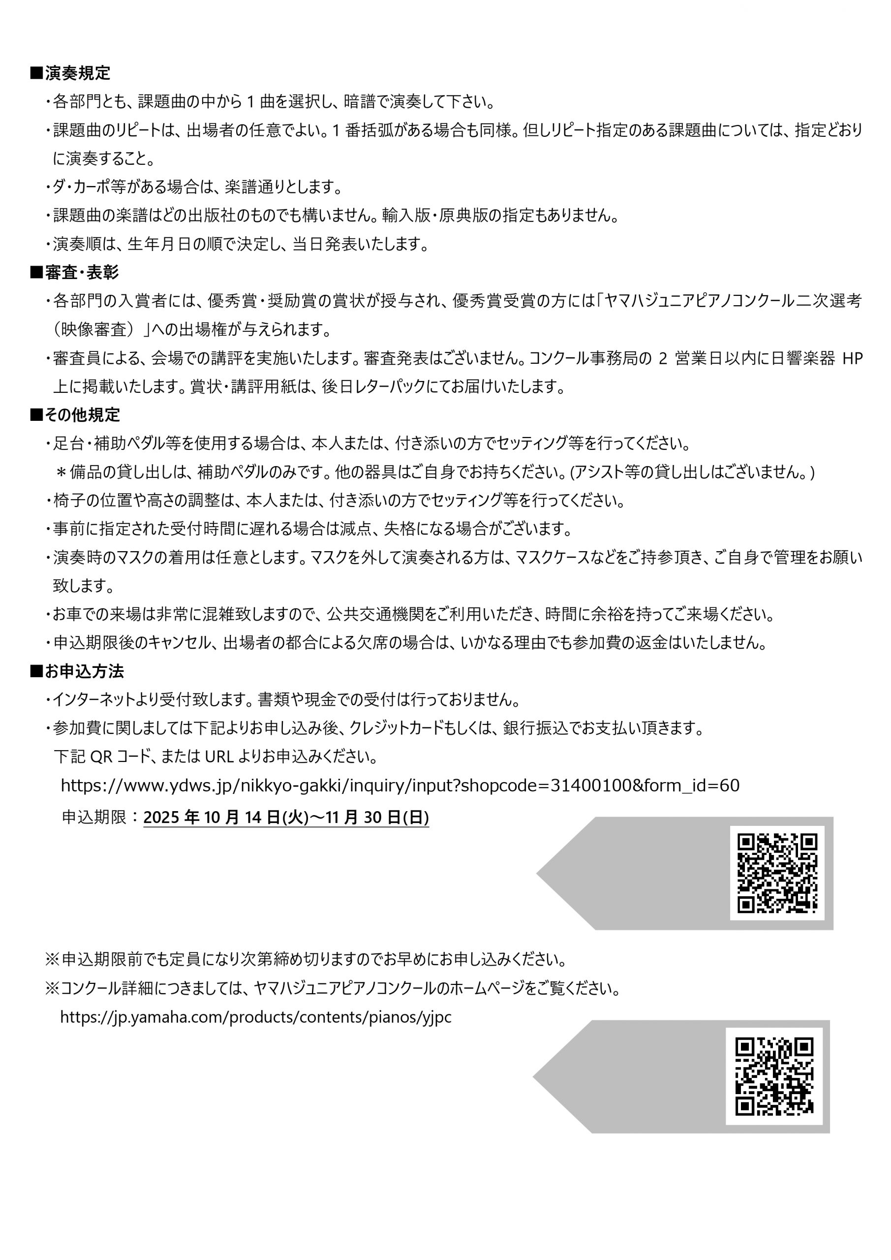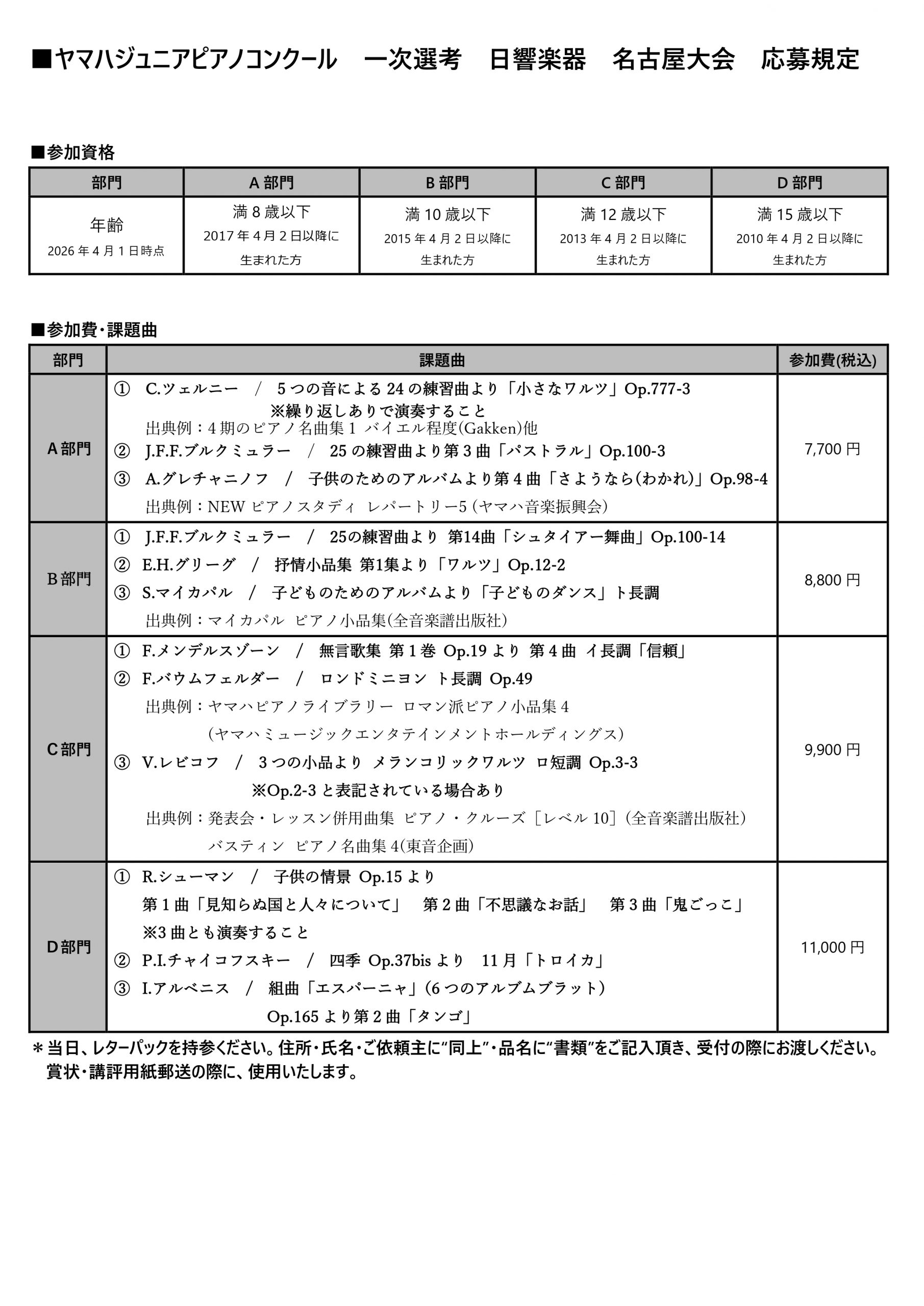 第11回ヤマハジュニアピアノコンクール 一次選考 日響楽器 名古屋大会